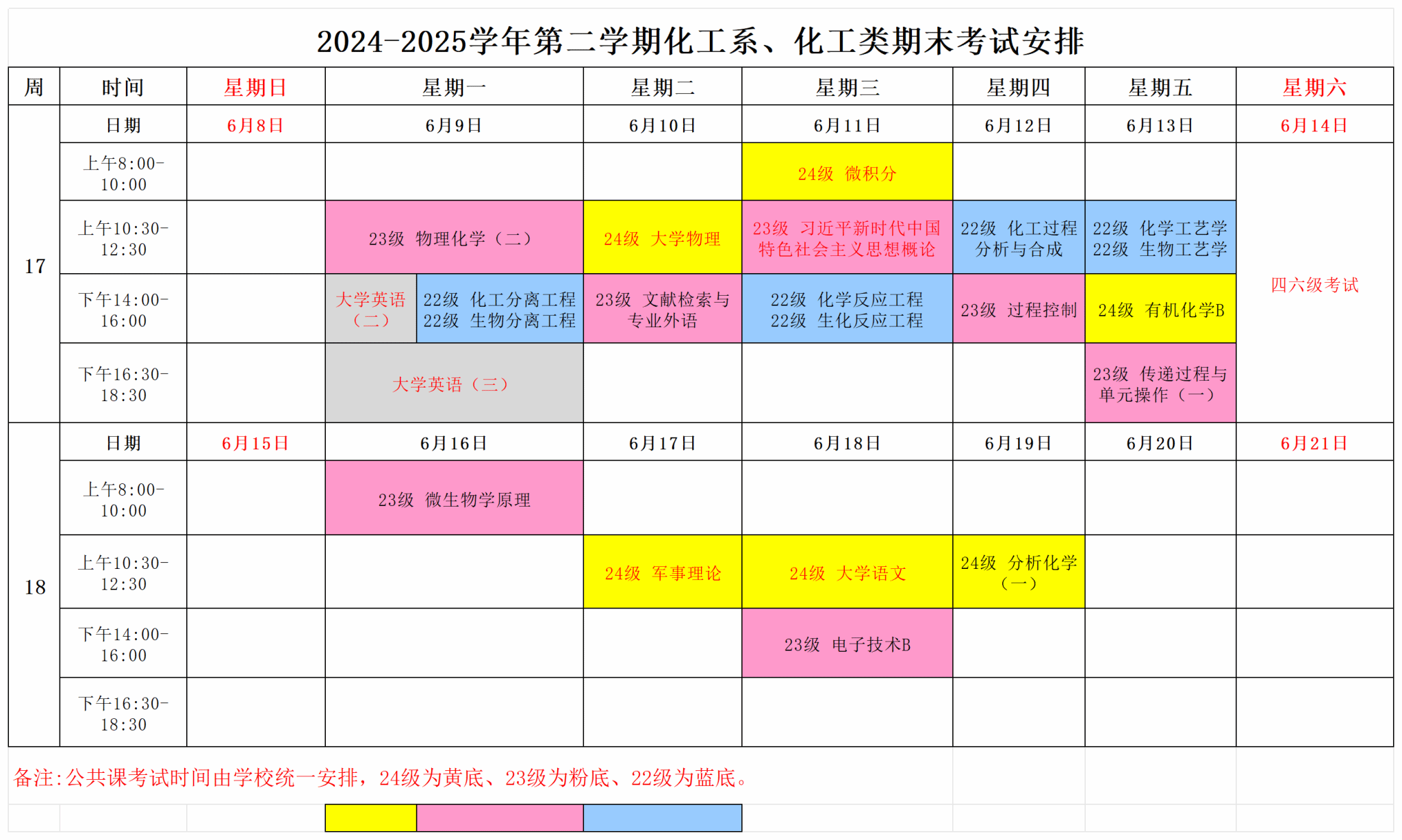 2024-2025学年第二学期公共课期末考试安排表