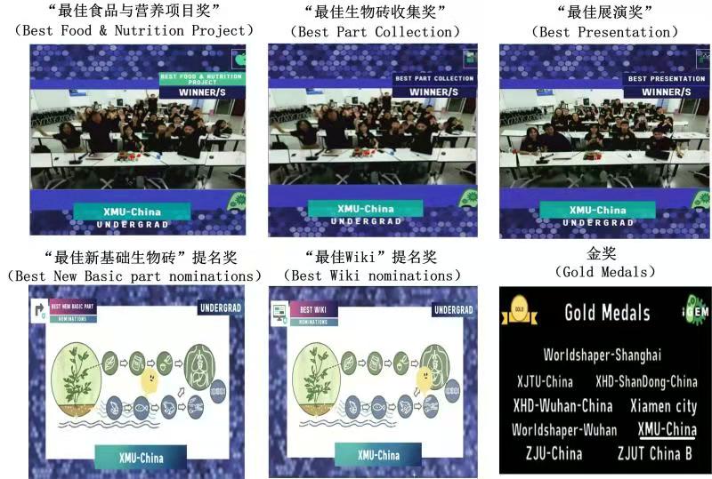 此次比赛中,厦门大学参赛团队将第十个金奖收入囊中,并创造了厦门大学参加iGEM竞赛10年以来最好成绩。同时,斩获“最佳食品与营养项目奖”(Best Food & Nutrition Project)“最佳展演”(Best Presentation)“最佳生物砖收集”(Best Part Collection)3项最佳单项奖,同时获得“最佳新基础生物砖”(Best New Basic Part)“最佳Wiki”(Best Wiki)2项单项奖提名。