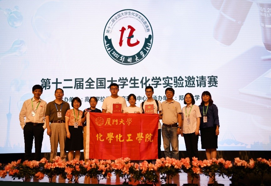 全国大学生化学实验邀请赛是我国高等学校化学学科面向本科生进行的最高级别比赛,自1998年开办以来,每两年举办一次,秉承“重参与、淡名次”的精神,旨在检验我国高等学校化学实验教学改革的成果,推动化学实验教学模式、教学内容、教学方法的改革,探索培养创新型化学人才的思路、途径和方法。本届邀请赛共有来自北京大学、清华大学、中国科技大学、厦门大学等全国43所高校的129名本科生和180余名高校教师参会。邀请赛分为笔试和实验操作两个部分进行,实验包括无机及分析化学实验、有机化学实验和物理化学实验三个科目。按照赛制,经赛前抽签,我院三位选手分别参加了单项比赛。最后,徐浩金和陈永钰两位同学分别取得单项一等奖的优异成绩,展现了我院学子扎实的实验技能和积极进取的精神风貌。