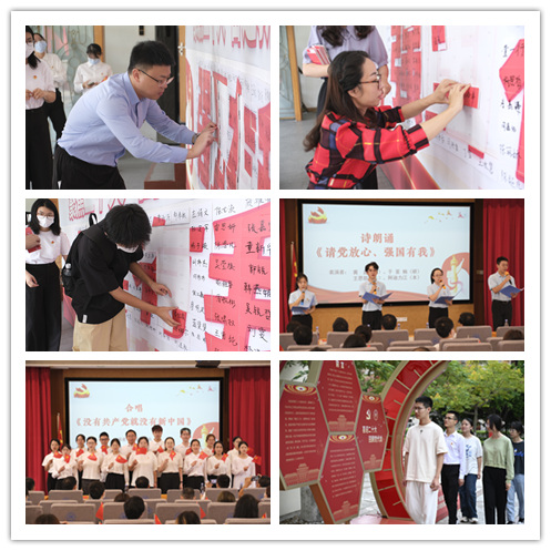 会前,学院通过组织师生观看“历次党代会回顾”主题展览、诗朗诵《请党放心 强国有我》、合唱团合唱《没有共产党就没有新中国》、举行“聚焦二十大·奋进新征程·强国有我”师生签名等多种形式,营造热烈庆祝大会胜利召开的浓厚氛围。