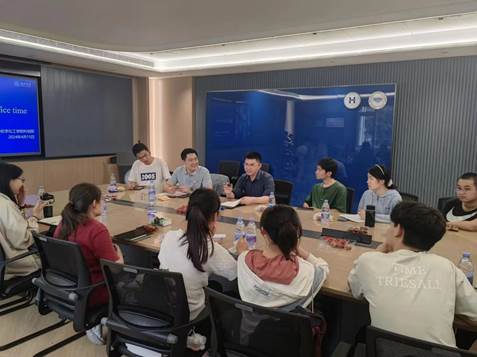 在简单的科研分享后,本科生同学与廖老师开始了面对面的交流。同学们对未来如何进行科研工作、现阶段的学习方法、记忆对学习研究的重要性等方面提出疑问,廖老师以老师和学长的双重身份,借用亲身经历向大家分享观点,提出许多具有建设性的建议,帮助同学们破开当下的迷茫。团总支科创部在活动现场还准备了水和点心,老师和同学们边吃边聊,有说有笑,气氛格外火热。