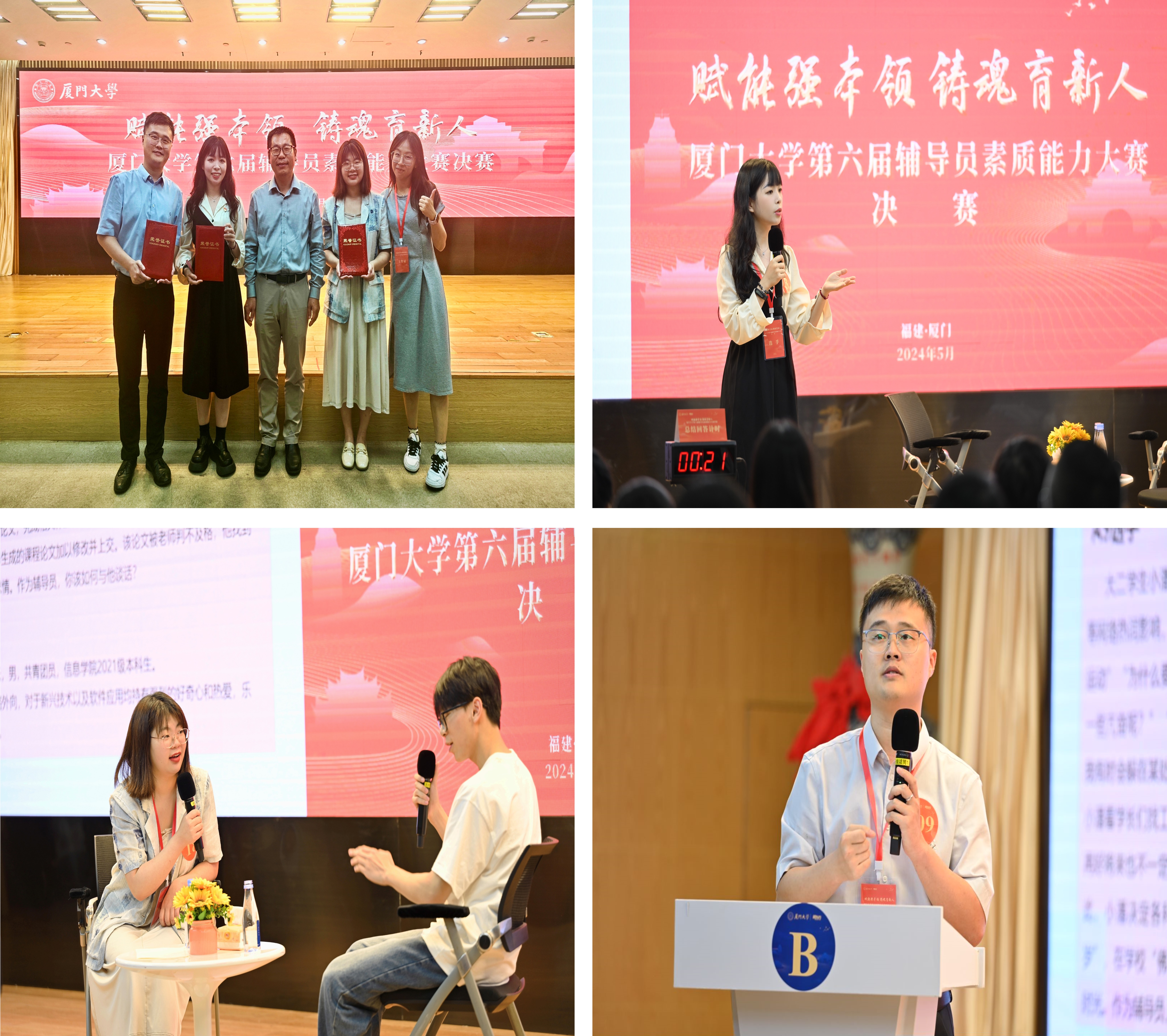 5月23日下午,厦门大学第六届辅导员素质能力大赛颁奖仪式在思明校区科学艺术中心一楼多功能厅举行,历时三个月的大赛终于落下了帷幕。我院龚巧彬、王慧、尚策三位辅导员老师进入了决赛,最终,全校共有18名老师最终获奖,我院龚巧彬与王慧获得二等奖,尚策获得三等奖。
