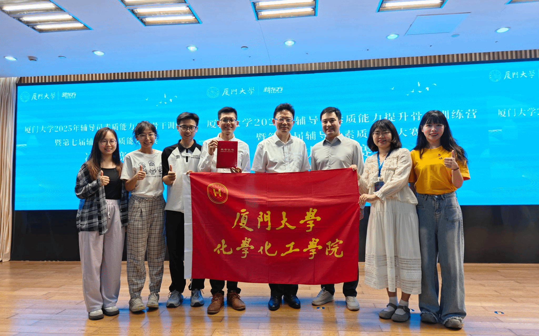 4月30日下午,厦门大学2025年辅导员素质能力提升骨干训练营暨第七届辅导员素质能力大赛决赛在思明校区科学艺术中心一楼多功能厅举行。在这场激烈的角逐中,我院辅导员高世杰凭借扎实的专业素养和出色的综合能力,一路过关斩将,最终荣获三等奖,为我院赢得了荣誉,展现了我院辅导员队伍的风采。