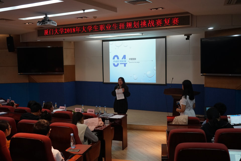 11月2日晚7:30,由厦门大学就业创业指导中心主办,化学化工学院团委承办的厦门大学2018年大学生职业生涯规划挑战赛复赛于卢嘉锡楼202室隆重举行。出席本次大赛评委和嘉宾有就业创业指导中心的任艳青老师,艺术学院辅导员张秀丽老师、王亚群老师,化学化工学院团委书记刘恩恩老师,化学化工学院辅导员高世杰老师、林秀娟老师和16级硕士生、学院研会原副主席李萌同学。