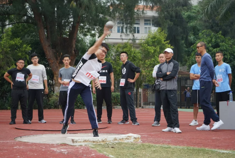 参加铅球比赛的选手互相竞争,成绩越投越远。这种不断超越自我的精神是个人的巨大财富,更是将来能够走得更高更远的稳固基石。