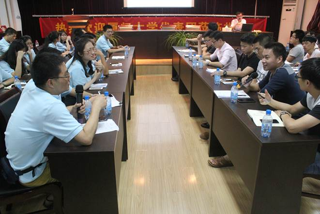 在几天的实践中,实践队员与企业研发人员进行多次的技术交流座谈。实践队员们逐个就自身所学相关专业和研究方向做了学术报告,并结合自身的专业知识,和公司研发人员从新药研发、产品纯化、仿制药合成等多个实际生产中的难点展开讨论。舒超博士运用扎实的科研能力和渊博的学术知识背景回答了企业提出的多项问题,得到了企业研发人员的高度赞赏。在交流座谈中,双方还根据校企研究差异、企业对人才的培养和选择、研究过程中问题的解决办法等方面展开讨论。永宁药业研发二所郁所长认为企业在药物合成的研发过程中,除了需要考虑产品的纯度之外,更需要注重生产过程中的安全问题。精化实验室张所长认为高校学生的科研大多都是以学术研究、论文发表为主,较少与外界进行沟通交流,缺乏实际的生产经验。他建议学校人才培养要更多地与实际生产相结合,加强与校外企业工厂合作,帮助企业工厂解决生产的疑难问题。