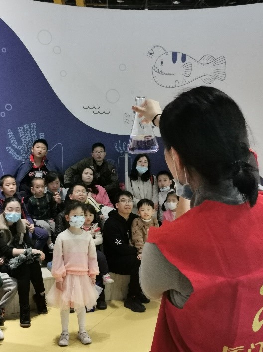 这次科普魔术秀以“色彩”为主题,用颜色的变化展示化学之美,从而引起孩子们对于化学的兴趣。上午10:00,我们到达科技馆。一番简单布置,就已经吸引了许多孩子们乖乖地落座,等待我们即将到来的演出。半个小时后,我们的展示正式开始。