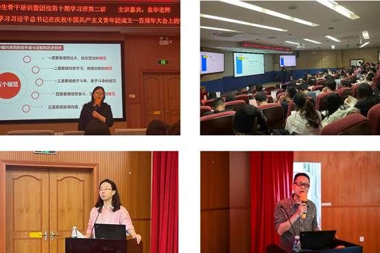 为切实提高学员工作能力、就业创业能力,培养学员的政治素养,培训班以技能指导和理论学习的形式,举办四场讲座。学校新闻传播学院的李世雄老师主讲自媒体时代的摄影基本功,为学员们传授美育知识、摄影内涵。摄影能捕捉美好的瞬间,不必交代来龙去脉就能传达出震撼人心的力量。李老师以化学实验为为例,生动地向学员们揭示摄影的奥秘。马克思主义学院袁华老师引领学生骨干们共同学习习近平总书记在庆祝中国共产主义青年团成立一百周年大会上的讲话。学员们在袁华老师的带领下,追忆往昔峥嵘岁月,感受先辈的赤诚果敢,感悟习近平总书记对青年做到“五个模范”的寄语,思考如何成为习近平总书记所说的“立大志、明大德、成大才、担大任”的时代新人。我院刘恩恩老师以“不忘初心跟党走,勇担青年新使命”为题,讲述学生工作中的组织纪律,明确学生骨干们的职责和担当,结合实例细心地教导学员如何做好学生工作,期望各位学员努力成为一名优秀的学生骨干。学校心理咨询中心祝婧媛老师给学员们分享了常见心理问题的识别与应对和沟通交流技巧。祝老师给学员们普及心理学概念,讲述如何面对常见的心理问题,分享的实例深入浅出,清晰了大家对抑郁症的认知。随后祝老师为大家讲解“储存关系”的方式,比如在处理事情中要“对事不对人”,希望获得他人信任时,可以尝试遵循“5:1”的原则。祝老师声情并茂,妙语连珠,全场掌声不断。