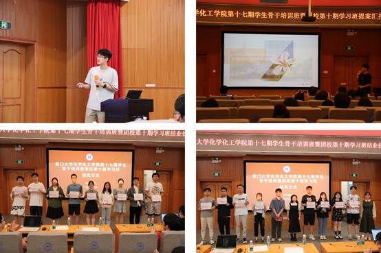 逝者如斯夫,转眼间,学生骨干培训落下帷幕。闭幕仪式上,学院党委副书记刘俊杰老师讲述校主陈嘉庚先生的经历、分析国内外形势,勉励在座的各位学员要严于律己,奋发图强,不要安于享乐,在学生工作中要避免个人主义、形式主义、官僚主义的出现。刘俊杰书记代表党委嘱托各位学生骨干认真学习厦大化院人“敢为先、重细节、合为贵”的优良传统,砥砺奋斗,勇攀高峰,培养自己的世界胸怀,走在时代最前沿,努力为中国的崛起和中华民族的复兴作出贡献。