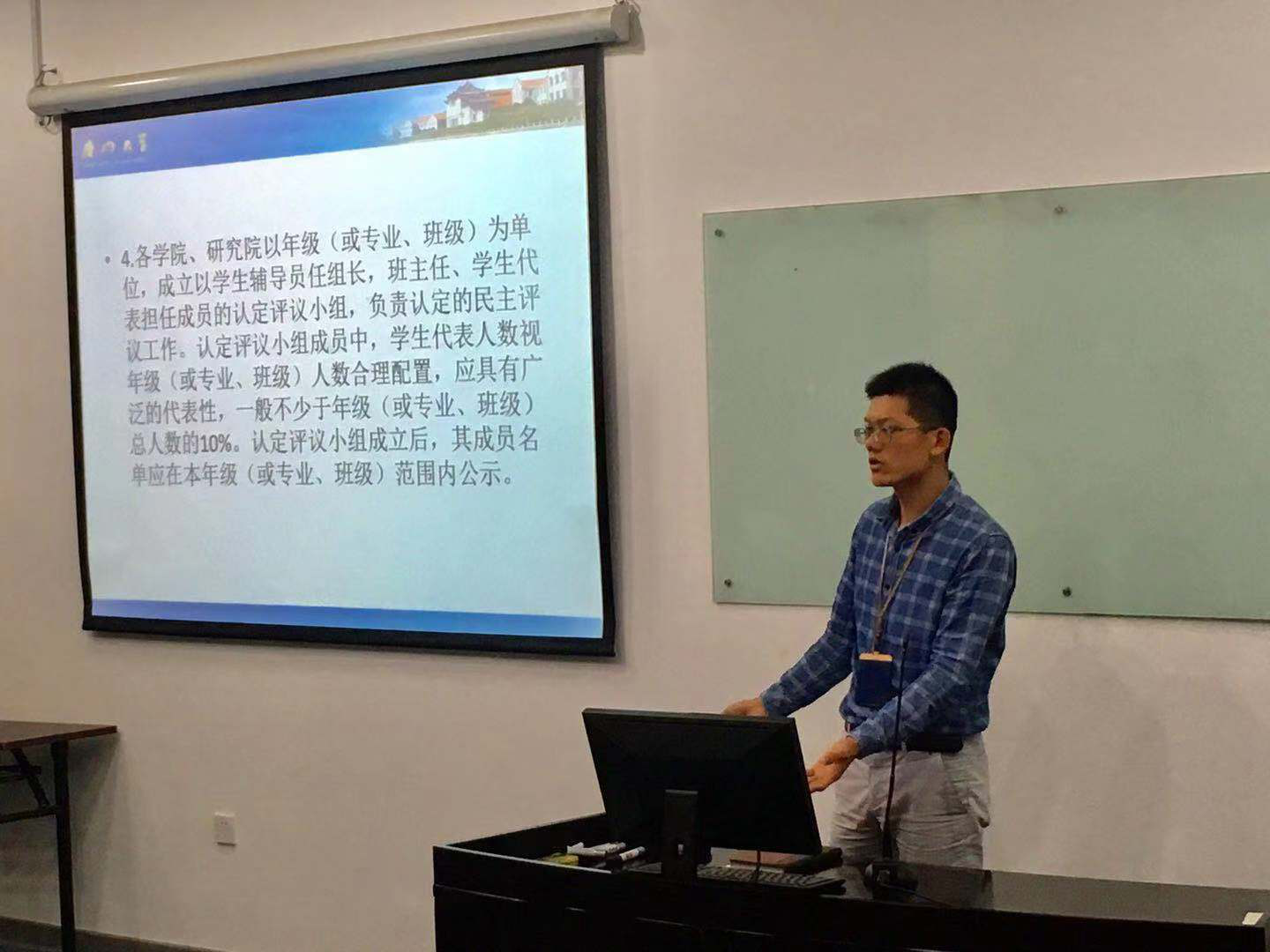 会上,高世杰老师详细解读了学校家庭经济困难学生认定和资助工作,强调困难认定的要求和标准,提出了“不让一个困难学生掉队,不让一个非困难学生获助”的原则,他同时介绍了学院资助工作、资助评定发放程序和工作要求,还分享了资助工作的日常管理。