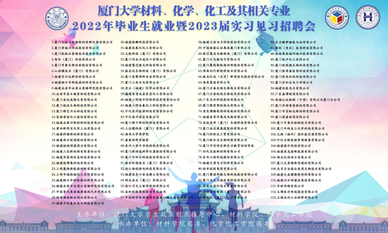 厦门大学材料、化学、化工及其相关专业2022年毕业生就业暨2023届实习见习招聘会